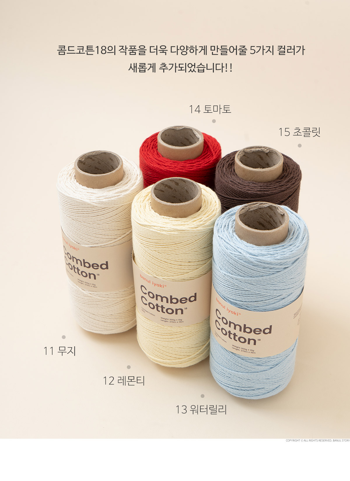 사계절 활용도 높은 부드럽고 탄탄한 Combed Cotton 100% 실입니다.