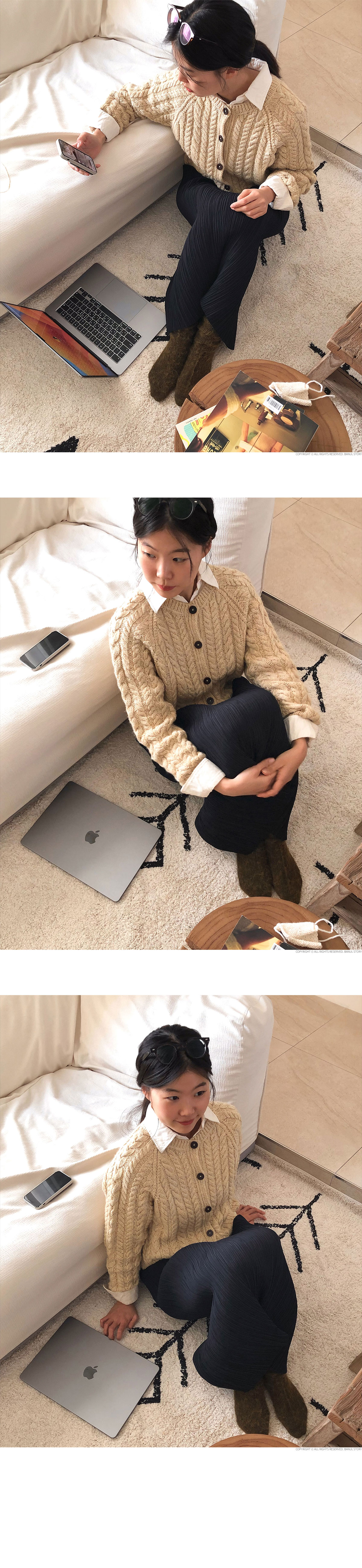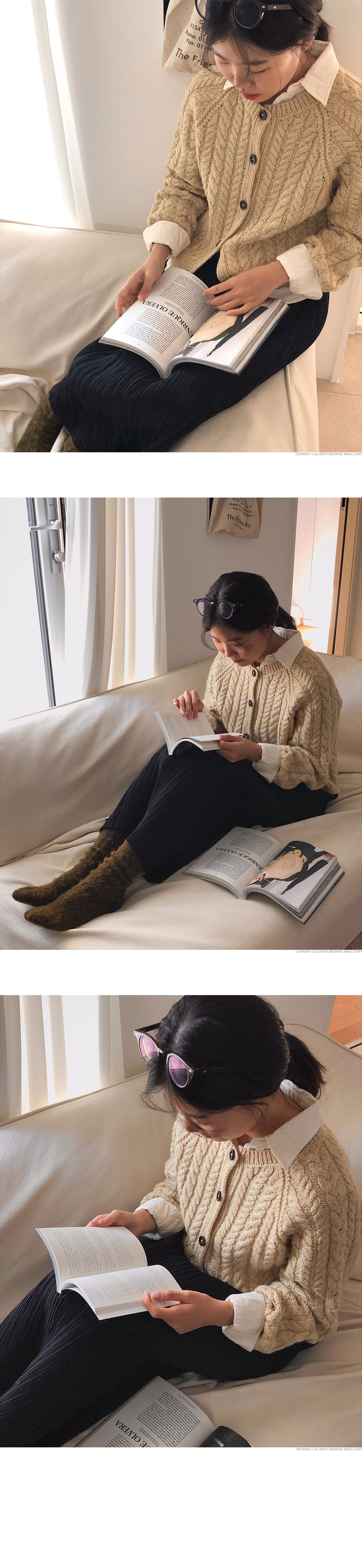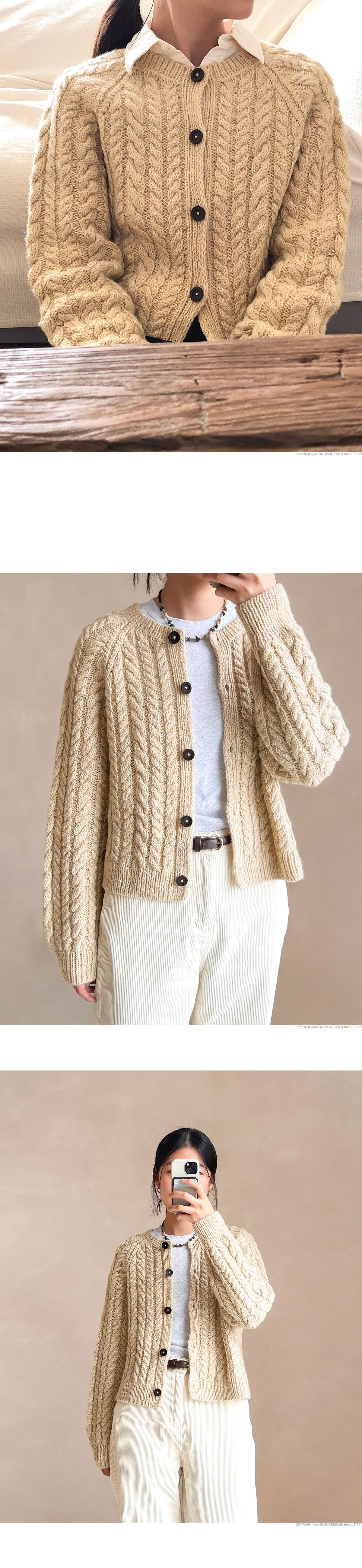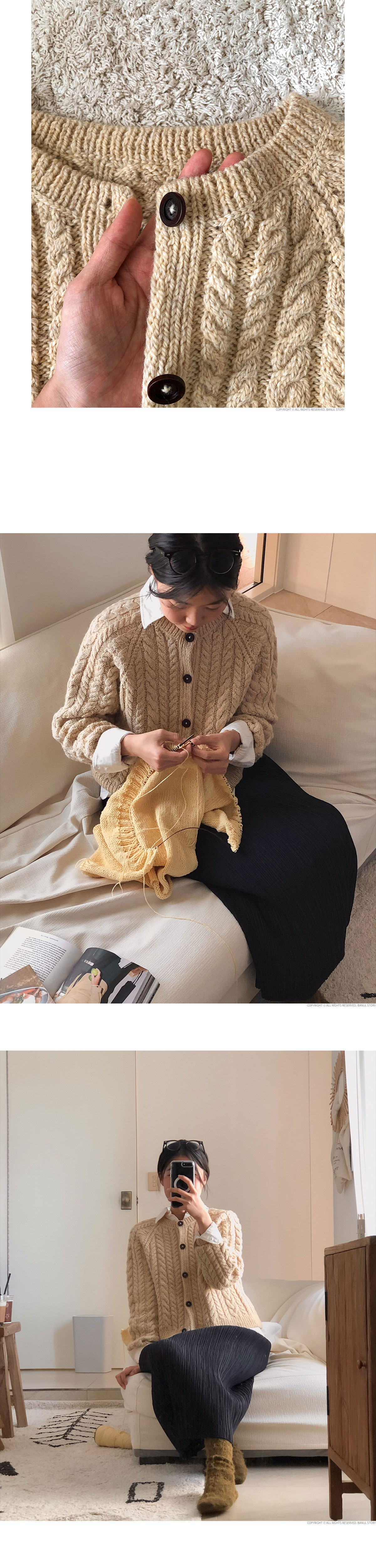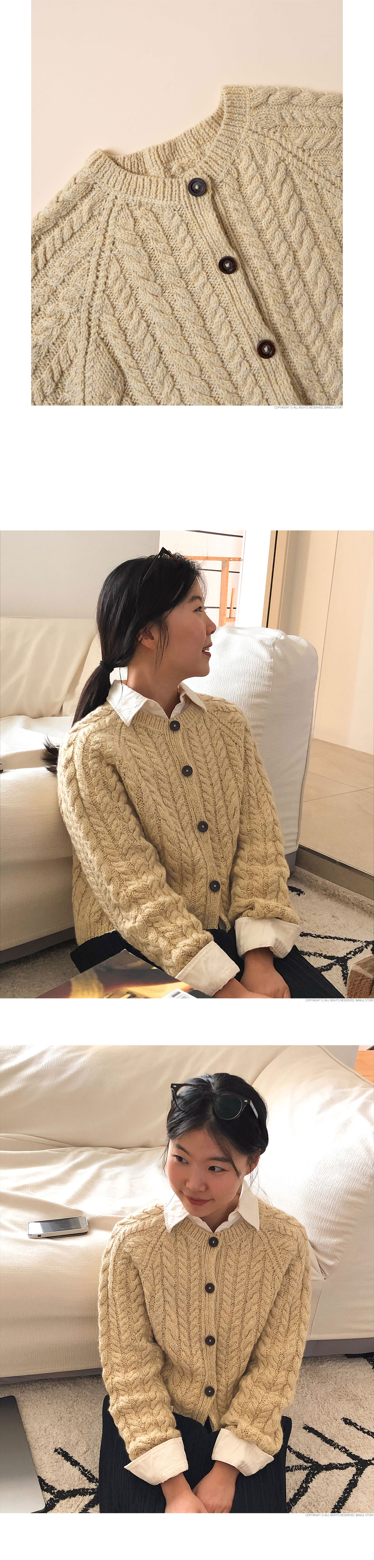 + 작품색상: 리티 2216번(모닝라이트) + 착용 사이즈: M + 제품구성(사이즈 XS 기준): 리티(색상선택) 5볼 + 볼드 나무 단추(20mm, 다크브라운) 5개 + 도안 + 사용바늘(별도구매): 4mm, 4.5mm 조립식 바늘 + 40cm, 80cm 케이블, 모사용 코바늘 6/0호, 돗바늘 + 게이지: 30코 24단(4.5mm바늘, 12.5cm×10cm, 4코교차+안2+4코교차+안2+6코교차+안2+4코교차+안2+4코교차 무늬) / 13코 8단(4.5mm바늘, 6cm×3.5cm(1무늬), 안2+9코 꽈배기+안2) + 사이즈: XS (S) M (L) XL (2XL) (※완성치수는 뜨개방법과 솜씨에 따라 사이즈의 오차가 생길 수 있습니다.) + 가슴둘레: 99 (102) 104 (108) 112 (116) cm + 옷길이: 51 (51) 52 (52) 53 (54) cm + 실사용량: 5 (5) 6 (6) 6 (6) 볼 / 약 485 (500) 520 (545) 570 (600) g + 뜨개방법: 끌어올리기 고무단, 겉뜨기, 안뜨기, 턴(져번숏로우), M1R, M1L, 꼬아뜨기, 걸러뜨기, 교차뜨기 (기초뜨는 방법은 홈페이지 내 동영상강좌 및 손뜨개기초강좌 참고) 목 고무단 부터 시작하여 버튼밴드와 함께 뜨는 레글런 탑다운 방식으로 제작되는 아란무늬 가디건입니다. 시접 없이 완성되는 무게감 있는 가디건의 경우 빼뜨기를 통한 목부분 보강이 필수적이기 때문에 코바늘이 필요합니다. 입어보면서 목 보강 전 후 핏 차이를 느껴보세요. 단춧구멍은 뜨면서 만들지 않고 나중에 afterthought buttonhole 방식으로 만들어주기 때문에 자유롭게 길이 조절이 가능합니다. 오버핏으로 입는것보다 정사이즈로 입는걸 추천드리며, 핏이나 여유분이 마음에 드는 가디건의 가슴 단면을 재보신 후 완성사이즈와 비교하여 사이즈를 선택하시기 바랍니다. 도안 QR코드로 들어가시면 아이패드 및 PC 열람용 가로로 긴 한장짜리 도안이 수록되어있습니다. 메리노블렌드DK버전 (1가지 사이즈) 도안도 qr코드에 함께 수록되어있으니 첫번째 동영상 아래 부분을 확인해주세요. 로포텐 가디건 도안은 전체 차트가 아닌 상단부분 차트만 제공되며 소매분리 후 부분은 모두 반복무늬이기 때문에 도안이 따로 없습니다. 소매는 모든 사이즈 전체 차트가 제공됩니다.