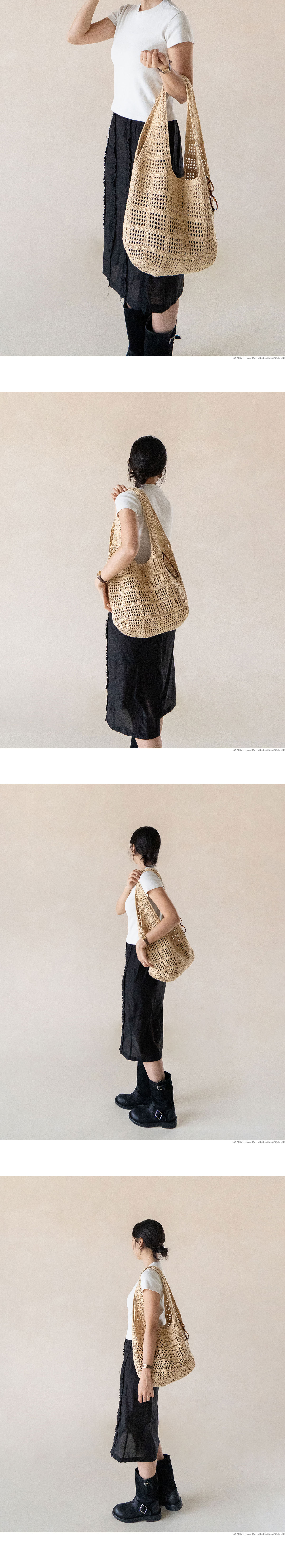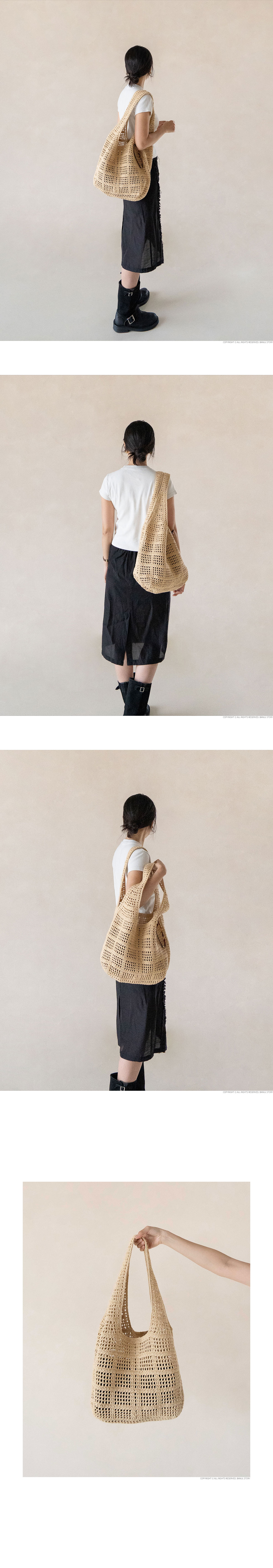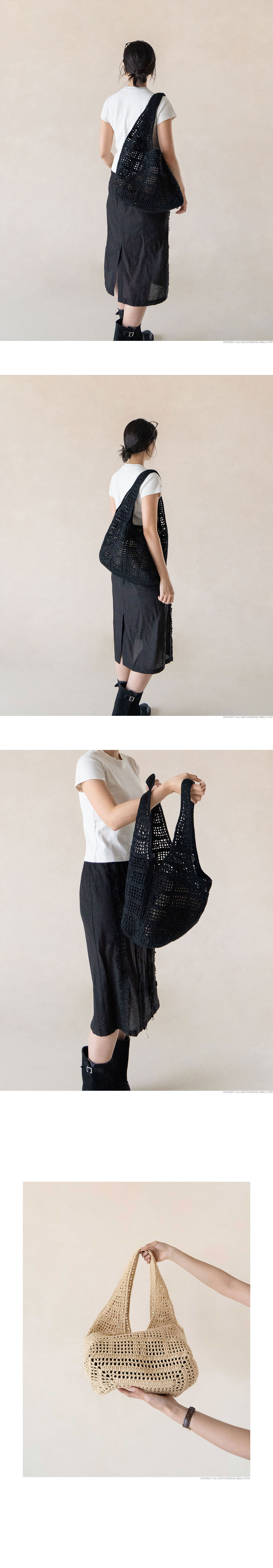 ![]() + 작품색상: 큐프로 라피아 260 601번(베이지), 큐프로 라피아 260 605번(블랙) + 패키지 구성: 큐프로 라피아 260(색상선택) 1볼 + 도안 + 사용바늘(별도구매): 모사용 코바늘6/0호, 단수표시링, 돗바늘 + 사이즈: 너비 41cm x 높이 35cm (손잡이 포함 높이- 60cm) (※완성치수는 뜨개방법과 솜씨에 따라 사이즈의 오차가 생길 수 있습니다.) + 게이지: 21코 × 9.5단(6/0호 코바늘, 10×10cm 몸판 무늬) + 뜨개방법: 사슬뜨기, 짧은뜨기, 한길긴뜨기, 빼뜨기 (기초 뜨는 방법은 바늘이야기 유튜브 참고) 가볍고 부드러운 큐프로 라피아로 뜨는 네트 숄더백 입니다. 한길긴뜨기와 사슬뜨기를 반복해 네모 반듯한 네트 무늬를 만들어 초보자 분들도 어렵지 않게 완성하실 수 있는 작품입니다. 260g 대용량 큐프로 라피아는 중간에 실을 연결하는 과정 없이 편하게 뜨실 수 있습니다. 가방 바닥이 넓은 사각형 모양이라 물건을 많이 수납할 수 있고, 자연스럽게 처지는 모양으로 내추럴한 코디에 잘 어울리는 디자인입니다. 바닥, 몸통 네트무늬, 손잡이 뜨는 방법까지 전체 동영상 강의로 알려드리니 부담 없이 도전해보세요.